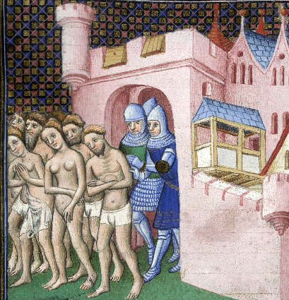 andi was allegedly removing women’s thumbs and ordering the removal of the nipples of a poor peasant woman (Tyerman p592). During the siege of Toulouse in 1217-18, captured crusaders could expect to have their eyes put out, their tongues removed, to be dragged behind horses, stoned, dropped from the ramparts, or drowned with mill-stones around their necks. According to Malcolm Barbour ‘In 1212, Roger Bernard, the count's son, captured some crusaders near Narbonne, took them back to Foix, where he and his men spent their time devising "new and original tortures" for them including suspension by their genitals’.