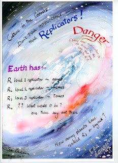 In case you can’t be bothered to wade through it here is a summery. First there were the genes ,the selfish replicators, which found a way to mercilessly copy themselves. In the fullness of time they produced blindly programmed sex robots called humans as copying machinery. But this had an unintended consequence. The gene copiers accidentally made themselves into meme machines which could copy and transmit mind viruses. What next I ask?. Apparently , with the advent of technology we are going to unwittingly unleash a frightening new entrant into the mix.